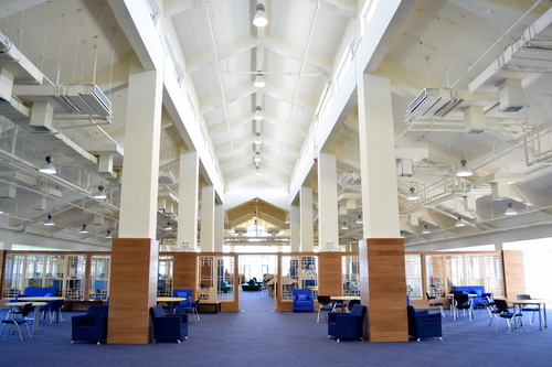 Throughout the campus, there are wide halls with large windows lighting the hallways. There are 13 fully-equipped science labs and in the upper school, a spacious, bright library.