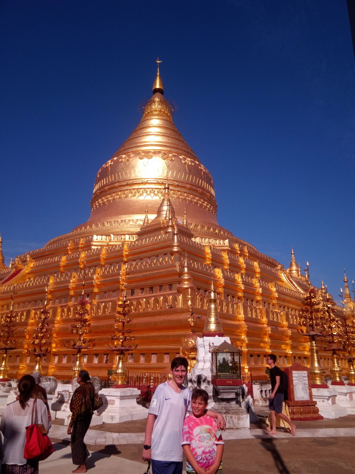 After four years in Asia, my sons’ tolerance for temples is worn thin, so we negotiated an itinerary based on seeing four key sites, with the option of stopping at anywhere along the way that looked interesting. Ananda is the most beautiful of the temples; Dhammayangyi the biggest. Shwesandaw was described online as a temple which visitors could climb, but when we visited it was closed off… I’m not aware that any of the monuments can still be climbed, and I don’t think it’s a sustainable future for 700-year-old structures.
