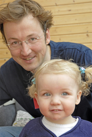 Martijn Hildebrand, stay-at-home dad and law student, and daughter, Sarah Hildebrand, age 19 months, both from Holland.