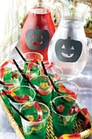 Assemble these gruesome dishes on black, silver, glass or green food dishes. Garnish with plastic spiders or make small bats out of black cardboard, tape them to toothpicks and insert into food.