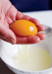 Yes, raw eggs can sometimes contain salmonella bacteria, but only the careless (or unlucky) cook stands a chance of suffering its adverse effects. Meanwhile, the tried-and-true method for testing the freshness of an egg is to plop it into a cup of cold water: If it sinks horizontally, it’s fresh. The older an egg gets, the more air it absorbs and stores in its fatty end, so an egg that’s around a week old will lie semi-horizontally in the water. A stale egg, however, will float in a vertical position. Also, when you crack an egg open, you can tell right away that it’s fresh if it has a rounded, plump and pert yolk and the egg white (albumen) is thick. A stale egg, meanwhile, will have a flatter yolk and a thin, watery albumen.