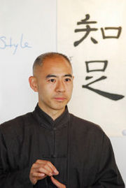 To begin a calligraphy work, place the brush in water, squeeze out excess water, and roll the brush in ink so it’s evenly distributed. “Wipe” the brush on the ink stone to remove extra ink and to shape the brush hairs into a sharp point. To create a flexible grip, the brush should be held with the index and middle fingers on one side of the brush, the thumb on the other. Hold the brush vertically with the wrist down and fingers up. Wang emphasizes that the moment before you start, it is important to relax. When a brush hesitates on the paper, the ink bleeds; therefore, the correct speed, agility and concentration is essential. Novices are advised to write slowly until they can develop their own rhythm.
