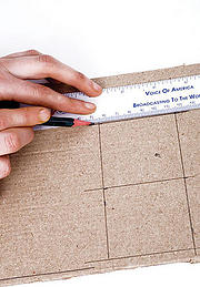 1. Using a pencil, draw ten squares measuring 6cm x 6cm on a sheet of cardboard.