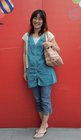 I bought this shirt at H&M. It’s my “old faithful” t-shirt. I also love Top Shop, but you don’t have that in Beijing. I love clothes. Right now, I’m on my way to exchange money to do some shopping while I’m here.