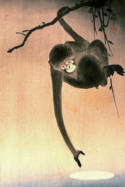 As instructed, all the monkeys climbed the tree. The top one wrapped his tail around a branch and hung upside down; soon all the monkeys were connected tail-to-tail in a “monkey ladder.” When the last monkey dangled near the surface of the water, inches away from the reflection of the moon, the branch suddenly cracked from the weight of all the monkeys – all of them tumbled into the water.