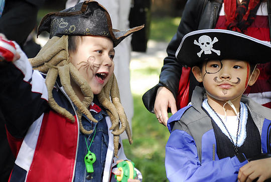 Last Saturday, on October 25th, over one hundred little pirates invaded Ritan Park – the brisk day started off with a lunch at Schindler Tankstelle of hotdogs and hamburgers, followed by face painting, temporary tattoos and costumes before the little pirates set off on their mission: to visit eight stations throughout the park, play each game, and collect ‘gold’ at each station. Adorned in pirate hats, sailor jackets, boots, eye patches and bandannas the plastic sword-wielding crew were wildly successful at games like balancing, pinning eye patches, and presenting their treasure to the Pirate Captain (aka Managing Editor Michelle Tsai) who directed them to pirate booty: toys, stuffed animals, goodie bags and more.