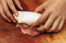 So my birds and I are forced to adapt and evolve. I want to preserve the way a well-roasted bird sits in all its majesty at the center of the table, its skin gleaming and crispy. The obvious thing to do is to shrink the size but keep the form, and I go off in search of the smallest poultry that Chinese grocery stores have to offer. Cornish hens? Quail?
