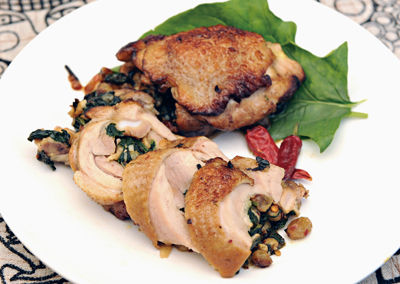 Lastly, I try one recipe in the tradition of keeping the stuffing inside the bird. One of my favorite poultry recipes comes from Mark Bittman, who dared stuff chicken thighs with greenery. The trick to the dish is to debone and butterfly the thighs to an even thickness; and restrain yourself when it comes to the stuffing. I use spinach, sunflower seeds and raisins. Use extra stock to make a sauce and you’ll have enough gravy to accompany a big mound of mashed potatoes.