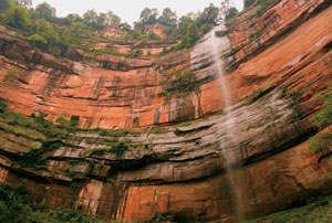Wuzhufeng (五柱峰, RMB 80) is definitely not to be missed and deserves a whole day. The curious red rocks (danxia 丹霞) here are the centerpiece of the township’s UNESCO bid. Are these geological formations world heritage-worthy? Put on your UNESCO hat and decide for yourself. An enormous, breathtaking arc of red rock (佛光岩丹霞绝壁), lightlytickled by a waterfall, highlights a sublime assortment of mineral formations. These include the “Flying Saucer” (太空船), the “Golden Monkey” (五柱压金猴) and the park’s namesake “Five Pillar Peak,” recalling a legendary five-pillared mountain that once imprisoned the Monkey King. The entrance road (2.5km) is 7km further south from the turnoff for the Bamboo Sea and the Shaluo National Preservation Area. Thursday-Friday