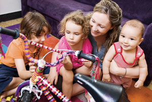 For Johanna Selth, bonding with her kids means giving them her full and undivided attention. She recently taught her daughter, Siena, how to ride her first bike – well, in this case, a trike. “Just to teach her to push the pedals, it comes so intuitively to adults, but kids have to learn every new detail,” says Johanna. There were a few moments when Johanna’s heart jumped into her throat at the sight of Siena riding into oncoming traffic, but she looks back on the day fondly, knowing that this was something they achieved together, “a real milestone.” Johanna recently had a baby boy – although there are many milestones ahead for them to conquer together, for now she is happy just staring into her son’s eyes. Siena had a better idea, though. She thought it was about time little Tadgh learned how to clap just like her. After weeks of mother/daughter demonstrations and clapping games, Tadgh made his first claps and hasn’t looked back since. Johanna feels that teaching Tadgh to clap was a great experience. “You really feel like you’re communicating; it seems so simple but it’s so important to them,” she says. Endlessly amazed by her children, Johanna feels like they are becoming more like “little friends” with every day that passes.