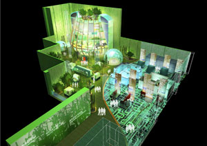 ·A giant domed 4-D theater/planetarium that holds 600 seats beneath a 30-meter wide dome showing a “Mission to Mars” film.