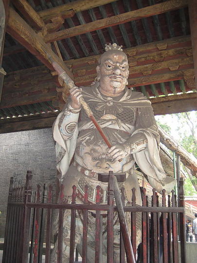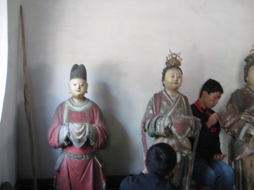 On our last day we visited Jinci – a distinct Song dynasty temple with a pleasant garden, natural spring and structures bearing statues of various deities and a shrine dedicated to the ancestor of the Wang clan, the largest in the country (of which my in-laws are members). What I found most striking was this collection of elegant Yuan dynasty figures playing instruments that were in the process of being renovated during our visit, as well as the impressively large guardian deity statue pictured below.