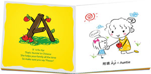 It’s for kids ages 1-8. You can read to kids at that age, and it’s not just learning ABCs – it’s a fun, rhyming book about Beijing. It incorporates Chinese characters and words. I’ve picked a word for each letter in the alphabet and then written a rhyme using that word. I’ve picked words that are fun for people to learn, like qiezie. Qiezie means “cheese!” (smile for the camera), but it also means eggplant. The book is a fun way to learn Chinese idioms.