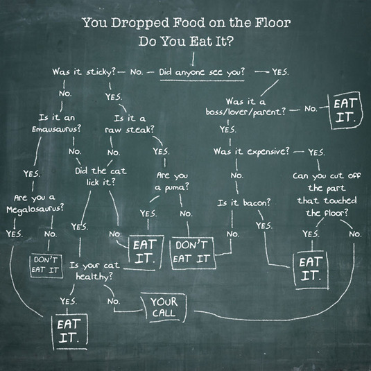 As someone who abides by the 5 second rule (or 10 seconds if it’s chocolate), I got a kick out of this flow chart. Humor aside, I recommend browsing through the Fooducate website where we found this gem, for great health info.