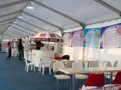 After a few laps around the rink, head to the enclosed heated viewing area to enjoy a hot beverage: coffee, tea (RMB 10) or hot chocolate (RMB 20). A diverse snack menu includes popcorn (RMB 15), donuts (RMB 10), marble cheesecake (RMB 20) and hot dogs to feed hungry skaters.