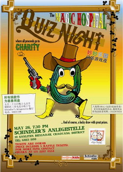 Tomorrow night, May 26, you can both help a worthy local charity and possibly stick it to the reigning champs of the charity quiz circuit, True Run Media, by turning up at the Sanlitun location of Schindler’s for the Magic Hospital Charity Quiz Night … in the process you’ll be in the running for a veritable booty of wonderful prizes.