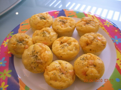 I made mini crustless salmon and mozzarella cheese quiches, but really, anything goes. Cut up your leftovers, transform them into this quiche creation and your family will not know what him them.