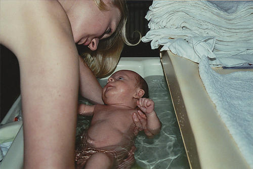 My father and stepmother sat beside the little plastic bathtub and watched as I cradled Edward’s head like a flotation device. I cupped warm water over his protruding tummy and watched his eyes move unfocusedly around the room. He was like a little furless seal, content to simply bob around in the water. Then, without any warning, this little seal looked me right in eyes, focused, and held the gaze as if to let me know that everything between us was as it should be. My dad, being a shutterbug, whipped out the camera instantly, taking a photo of his infant son and adult daughter making "googly eyes" at each other.