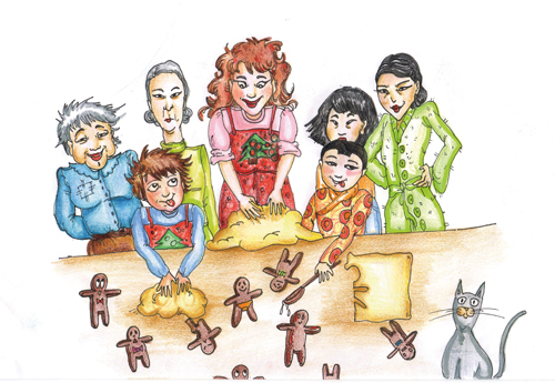 For several days my son Myles and I mixed, rolled, and shaped batches upon batches of cookies. After most of the decorative, festive gift cookies were finished, we invited his local friends to the house for the finale – gingerbread. One Chinese boy had recently read The Gingerbread Man in English, so he was especially interested in seeing how they were made. When he came over with his parents, his mother asked for an apron and offered to help. I surprised her by telling her that the boys, 5 and 6-years-old, were going to be doing most of the work. Patiently and conscientiously they took turns with the rolling pin and cookie cutters. As the cookies baked, we re-read The Gingerbread Man as well as a few other winter-themed books. It wasn’t until the following October, though, that I got a real measure of the success when Myles’ friends started asking when Christmas was, so they could make gingerbread again.