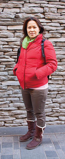 My red coat is from Mexx, my pants from Taobao and my boots from Taiwan.