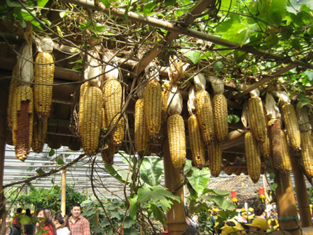 The grounds feature a manmade lake and seven floral exhibition halls with Chinglish names that roughly translate as "The Melon Orchard," the "Flower Research and Cultivation Hall, a tropical rainforest, desert plants area, a tea and flowers appreciation hall, "Quality Flowers Hall" and a "Floral Display and Activity Area."