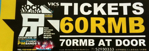 Bands from six Beijing High Schools — The Western Academy of Beijing, Beijing World Youth Academy, International School of Beijing, Tsinghua, No. 55, and Harrow are set to rock Vics in Sanlitun Saturday in a fundraiser for Japan.