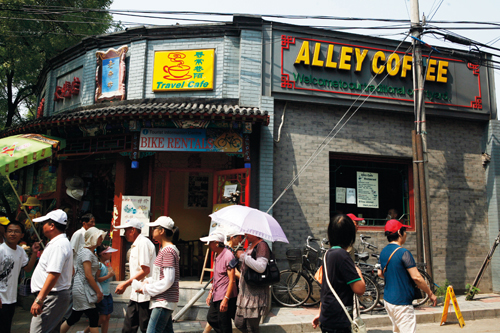 Exit the East Gate, cross the street and walk right to the Alley Café (2), which sits to the left of the entrance of Shatan Houjie. With its traditional Chinese style exterior and graffiti inspired interior, Alley Café serves Western and Chinese food. They also provide bike rentals for RMB 50 per hour (RMB 600 deposit).