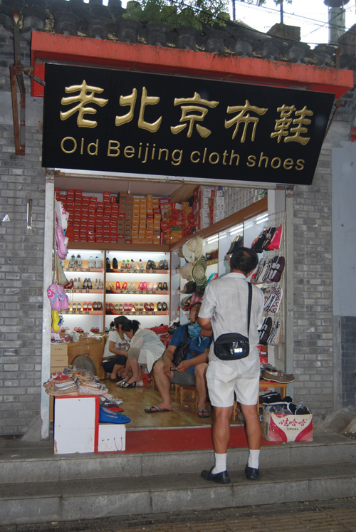 After a quick snack at the café, head on out of Shatan Houjie and turn left, walk straight and you’ll see Old Beijing Cloth Shoe Store (3) to your left. This small shop offers decent quality shoes for sale. Prices are negotiable and shoes come in an array of colors and designs.