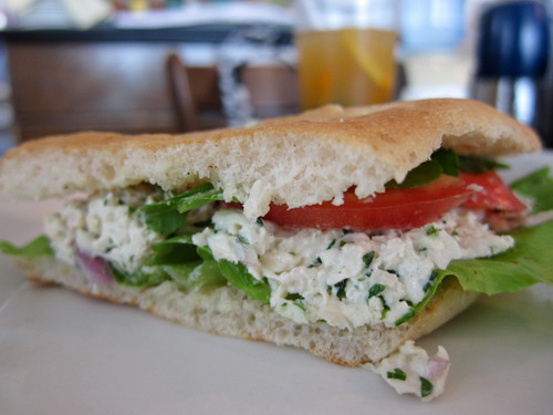 Inside, they stock freshly baked bagels decorated with sesame seeds and pita breads sat, in addition to a display of delectable goodies. On offer are fresh herbs (dill, rosemary, sage) for RMB 10, sage and rosemary sea salt (RMB 45), Green Cow organic eggs (chicken RMB 5, goose RMB 10), chocolate chip cookies, linzerhearts and the ultimate in cuteness: mini gingerbread men (RMB 10). The restaurant also has organic peanut butter and tubs of tahini, dark and light roast (RMB 35).