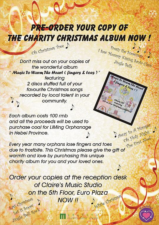 The charity CD costs RMB 100, and ALL of the proceeds go to this orphanage’s needs.