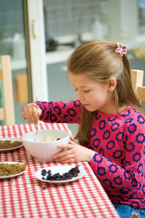 Mornings are a busy time for families. Making sure that everyone gets a perfectly balanced meal can be tricky. Cereals are quick and easy, but they are also jampacked with sugars, and their “nutrients” are synthetic and hard to digest. Making your own muesli is a great alternative. Just sit everyone down around the kitchen table, let them try each of the ingredients, and add what they like to their batch. Everyone gets a custom treat and it’s also a great opportunity to talk to your kids about nutrition. It’s important to choose dried fruits free of sulfides and keep fruit additions to a minimum, as they can be high in sugar. The muesli can also be made into granola. Pair this with a few slices of homemade banana bread and you’ve got one healthy breakfast.