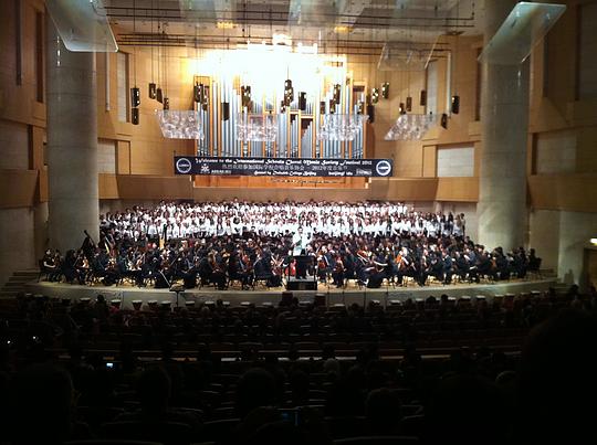 It had been years since I attended a show with a live symphony orchestra – even longer since I listened to a decent choral performance. So when we had a chance to attend the International Schools Choral Music Society (ISCMS) gala concert, the whole family decided it was a good idea. We wanted to see the over 400 musicians and singers on stage, but I was equally curious about what kind of music hall sits within the confines of the former imperial garden where the Emperor used to relax, the beautiful Zhongshan Park. It is the kind of place I had been meaning to explore and finally we would get to do so at night.