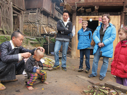 The best part was breaking away from the hordes of Western tourists and discovering the daily lives of the different minorities at each of the villages. The Spragues saw a father give a traditional haircut to his son with a scythe in the Miao village of Biasha, a man build a coffin for an elder villager, and saw how a traveling salesman would pitch new kitchen appliances in Leli Village.