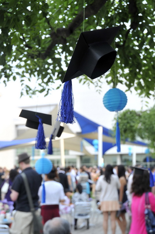 The ceremony concluded with graduates throwing their caps and a shower of balloons in ISB colors—blue and white. A reception with personalized class of 2012 cupcakes, a string quartet and photo-taking galore completed the evening against the backdrop of banners stamped with the class’ symbolic Chinese character yi (義) which they chose to encapsulate their youthful vision of a higher standard, their boundless resolve to pursue it and their stamina to leap from thought to finish.