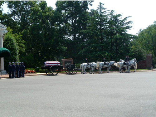 The chapel service was professional, yet very personal. Then the procession of tradition and formality, servicemen performing their Arlington duties with respect – that was overwhelming. Following the caisson slowly up and down the rolling hills to the graveside service, one of the most breathtaking moments was seeing a large group of tourists simply stop at the side of the road as we passed, observing silently and respectfully. They were likely in awe of their chance sighting of an actual funeral procession; I was in awe of their reverence of the moment, and my emotions got the best of me.