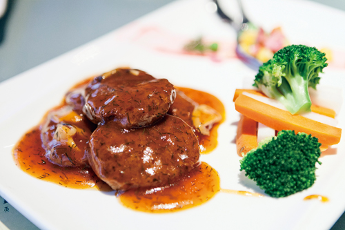 Best dishes for adults: American vegetarian steak with mushroom and tomato sauce (蘑菇汁牛排/番茄沙司牛排, RMB 30), boiled asparagus (young shoots of the “chayote” vine or 清吵龙须菜, RMB 25), Hangzhou West Lake Water Shield Soup (西湖莼菜汤, RMB 22/26)