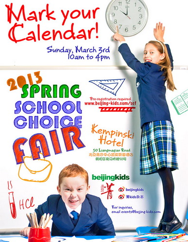 The second annual beijingkids School Choice Fair is fast approaching! Join us and other families this Sunday, March 3 from 10am to 4pm in the Kempinski Hotel Ballroom and touch base with representatives from more than 30 of Beijing’s top schools. Prep for the day by reviewing our beijingkids 2013-2014 School Choice Guide, and make sure to pre-register!