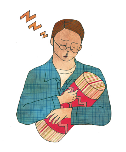 Recently, my condition has degraded into hallucinations. The other night I heard the clarion call of a still unidentified (though adorable) baby boy and I began to grope around the bed to locate the troubled child. Finding him, I tenderly scooped him into my loving arms and began to console the poor thing. Savvy, who was nursing the child, calmly inquired what I was doing. “I’m trying to get him back to sleep,” I slurred in hushed tones. It was only then that I realized I was tenderly patting the back of my pillow.