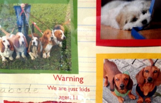 It’s a win-win situation. Your dogs get walked by responsible young children, and in turn you help them earn money which they will use to save a dog shelter. The very charming ad for dog-walking was spotted at Jamaica Blue Cafe in Yosemite. “Warning: We are just kids, age 11” says their poster. The enterprising children charge RMB 10 per half hour and per dog. But the best part is where dog walkers Joshua, Lian and Mary inform clients that they are trying to save up RMB 300,000 to save a dog shelter so the dogs don’t have to go to a terrible pound. Call Josh at 152 1065 4746.