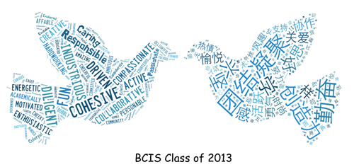 To find out, I conducted a poll of your teachers. I asked them to submit the words that they thought best described you, our Class of 2013. They plundered the English dictionary to uncover an astonishing range of adjectives that delighted me for one main reason. Every single word they submitted was positive, and every single word contributed to a picture of a class that has been much loved and admired by its teachers and which will be greatly missed when you leave. Here is the picture of you, a bilingual picture, that your teachers have painted in words. You hold your head high yet with compassion, your core is cohesive, and the wings that carry you are creative, caring and industrious. That’s how your teachers see you, and they are absolutely right. Believe me, it is extremely rare for teachers to describe a graduating class in such emphatically complimentary terms. Of all the graduating classes I have known you are the most admired and the most loved. That is why your teachers held that pep rally; beneath the pizzazz was genuine affection.