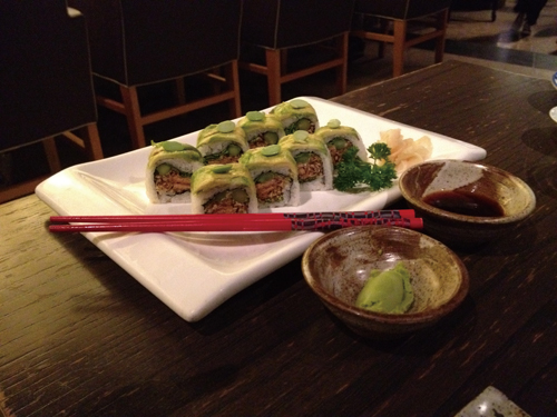 This pretty green roll is artfully arranged and delicately presented, just as Japanese food should be. The roll is filled with asparagus, gobo age (deep fried burdock root), and inari (deep fried tofu), and topped with slices of avocado with edamame perched on top. It is by turns silky, soft, crunchy and chewy. An eight-piece roll costs RMB 60 at any branch of Hatsune.