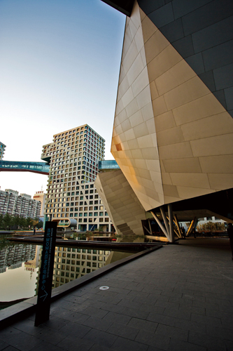 The cinema is located at the heart of the MOMA complex (the one with the interlinked sky bridges). Set on an island in the compound’s artificial pond, bc MOMA looks as though it is floating on water. There are three floors: a lobby on the first, a cafe and a lending library on the second, and the screening rooms on the third. Visitors have access to escalators and a lift, so families with strollers or young children need not worry. The decor has a contemporary European feel, with a soft lime-and-white color palette. Framed movie posters adorn the walls.