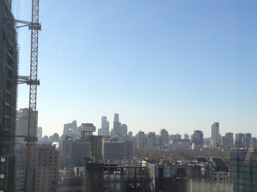 In any case, you can look at the air, and see it (think about that for a moment). So instead of resorting to words, I decided to chronicle the air quality of Beijing in pictures. Over the last few months (July – December 2013), I have taken a series of pictures from my apartment window as the air quality readings went up and down. I tried to use approximately the same view, and took pictures at approximately the same time, around 11 AM. From my fifteenth floor window, I have a clear line of sight to Beijing’s central business district with its iconic buildings — The CCTV headquarters (aka “Big Shorts”), the China World Trade Center Tower III, and the Park Tower of the Beijing Yintai Center being the tallest of the lot. Watch as this beautiful sight changes, gets veiled, then dissolves into thick air with the rising air quality index readings.