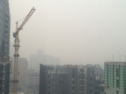 Today is a good day to blog about air quality in Beijing. The great city of Beijing is at the moment completely shrouded in a mysterious veil of grey mist that has been hanging in the air day and night for the last three days. Looking out the window, it could be mistaken for a snow storm settling in on a city in North America – shades of grey everywhere and the air thick with powder. Which could be considered romantic!