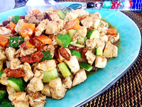 When we tried to replicate this staple Chinese dish at home recently, we also chose to omit the fistfuls of Szechuan pepper that were recommended. However, we used a packet of Chinese gongbao jiding mix, and this resulted in a fiery flavor without numbing our taste buds. The gongbao jiding packet is available in any grocery store or market, local or for expats, for approximately RMB5. Picking up a ready-mix seasoning packet is a good way to introduce yourself to Chinese cooking, and eliminates the need for buying several different ingredients that you will use only very little of.