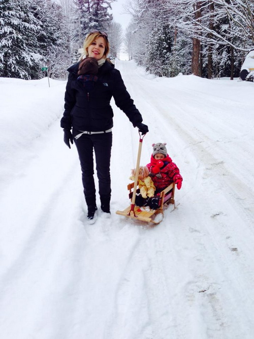 For now, I’m enjoying the crisp beauty of winter that settles into my cheeks as I walk, the crunch of snow beneath my boots with every step, the sound of the sleigh’s wooden slats scraping and sliding against the frost as I pull my perfect little girl behind me, and the subtle snuffling noises of a newborn wriggling against his mommy’s chest as he’s all cuddled up under my jacket.