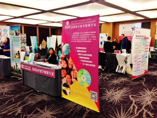 Basically, the School Choice Fair (officially called “beijingkids & Jingkids 2014 Spring School Choice Fair”) is a trade show. Sponsored (fittingly, for this city) by RGF Air Purifiers, it took place on the second and third floor of the Hilton with some tables set up in small conference rooms and others around a mezzanine circle outside of the elevators on each floor. Each school (as well as a few additional services for the international community) had a table or “booth” at which they were handing out information and flyers. Many had play tables for kids off to one side and balloons and gift bags, etc. I found myself wondering if it was unfair for me to be judging the schools most likely to be overcharging in the way of school fees by the quality or quantity of their free gifts! There were also lectures that I couldn’t attend, but I think I’ll go again next year without the kids and do so!
