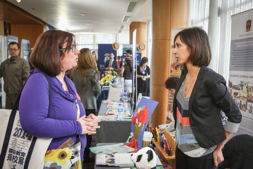 The fair occupied the second and third floors at the Hilton Beijing at Liangmaqiao with exhibitors armed with gifts and reading materials for fair attendees. Curious parents took the time to get more information from the participating schools about their curriculum, facilities and fee structures.