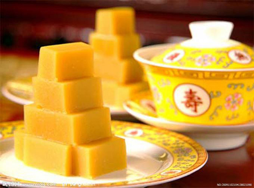 Popular Beijing snack, wandouhuang (Pea Flour Cake/豌豆黄)is a sweet dense cake made from peas. The snack is made mostly from mashed peas and is yellow in color despite being made from white flour. According to Wikipedia it was a favorite snack of the royal family since the Ming Dynasty. Also, a ceremonial dish eaten on the third day of March, according to the Chinese calendar. This snack can be found in local supermarkets, traditional confectioners and the vendors.