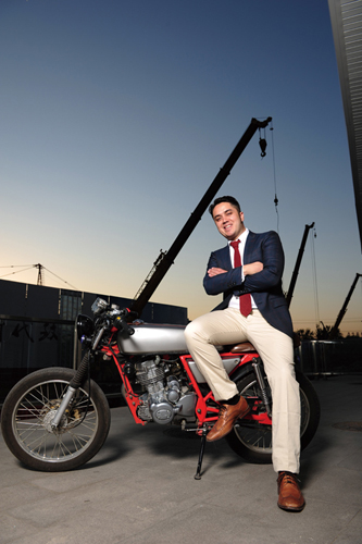 As luck would have it, we have access to Yuen’s motorcycle, which photographer Dave Hanssen lights against the setting sun.